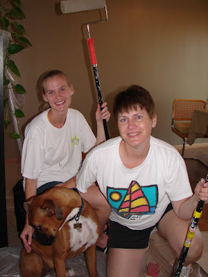 While the boys were downstairs putting in the final touches, us girls (my mom, sister, Kris & I) were upstairs putting on a fresh coat of paint. And Jonzy too!